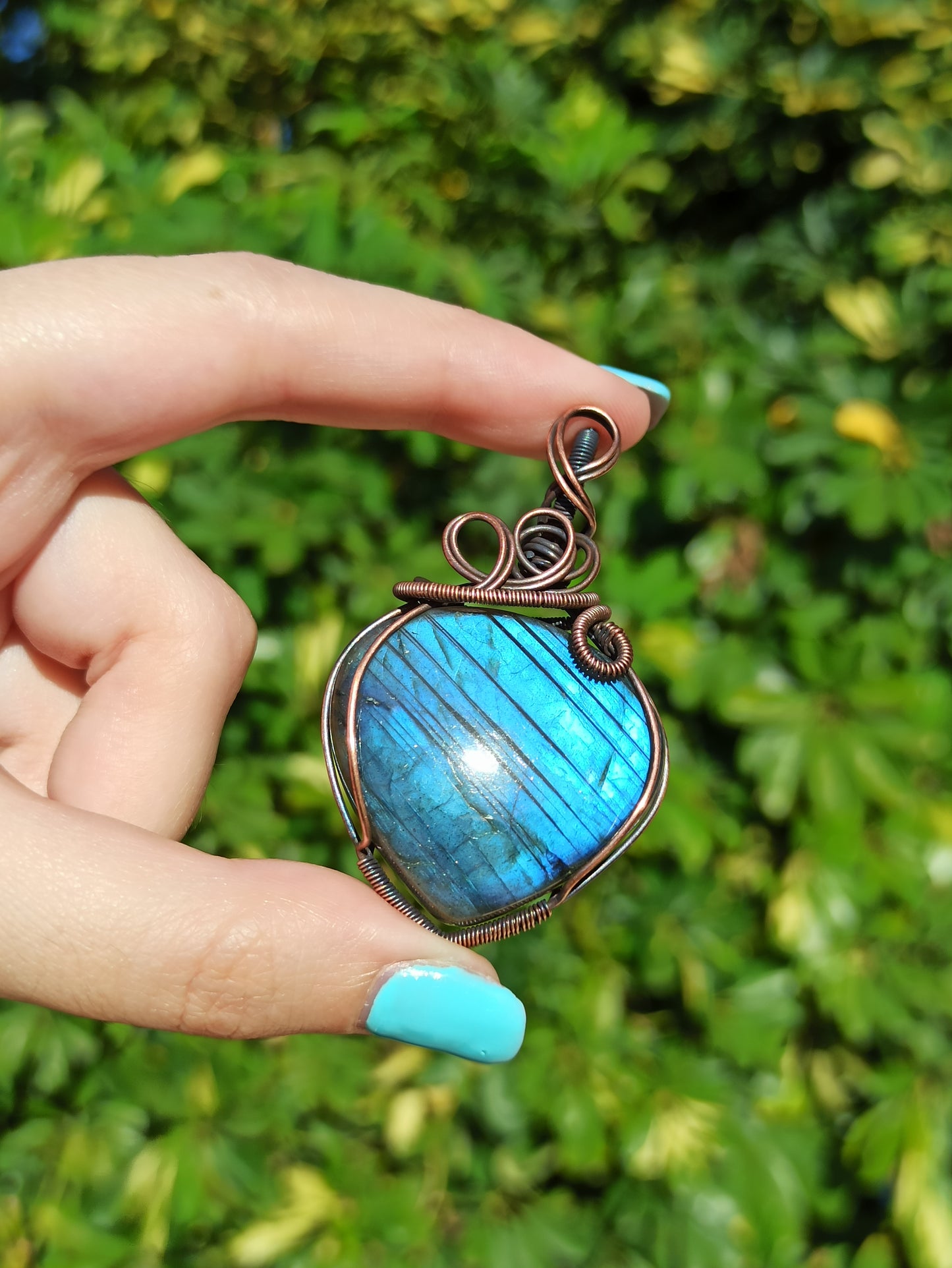 Μπλε μενταγιόν τυλιγμένο με σύρμα από Λαμπραντορίτη