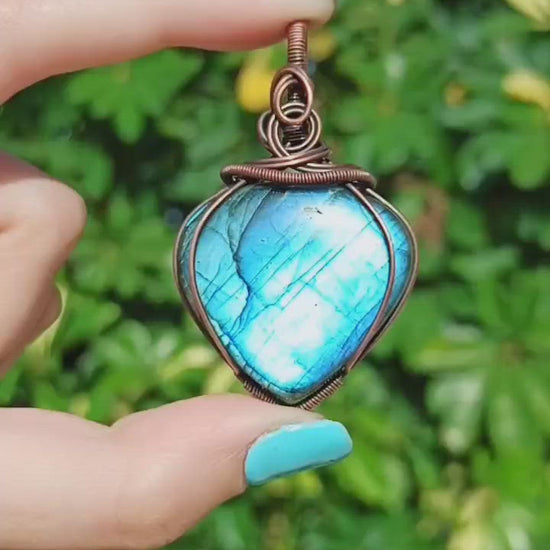 Μπλε μενταγιόν τυλιγμένο με σύρμα και πέτρα Λαμπραντορίτη