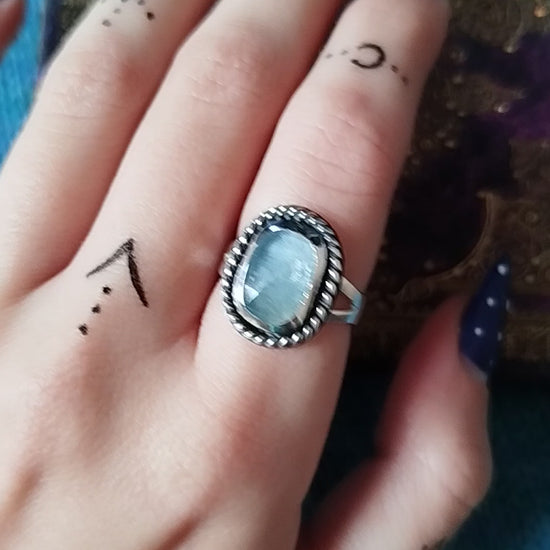 Boho Silver Ring with Kyanite Gemstone in Aquamarine Handmade Jewelry for Women Minimalist Design